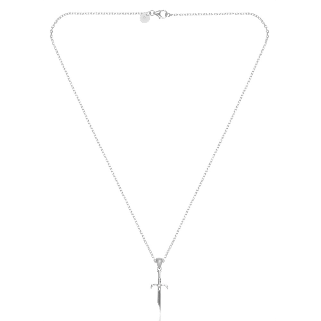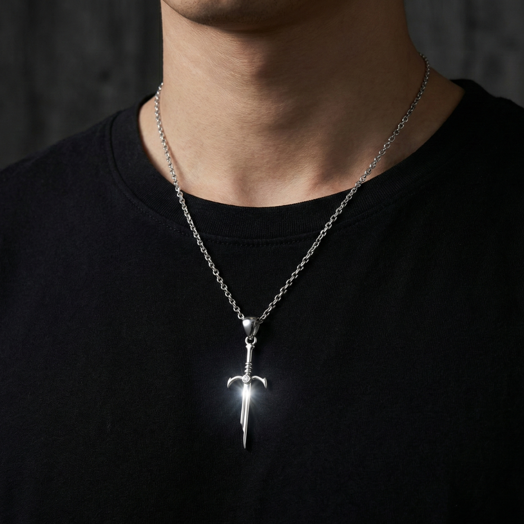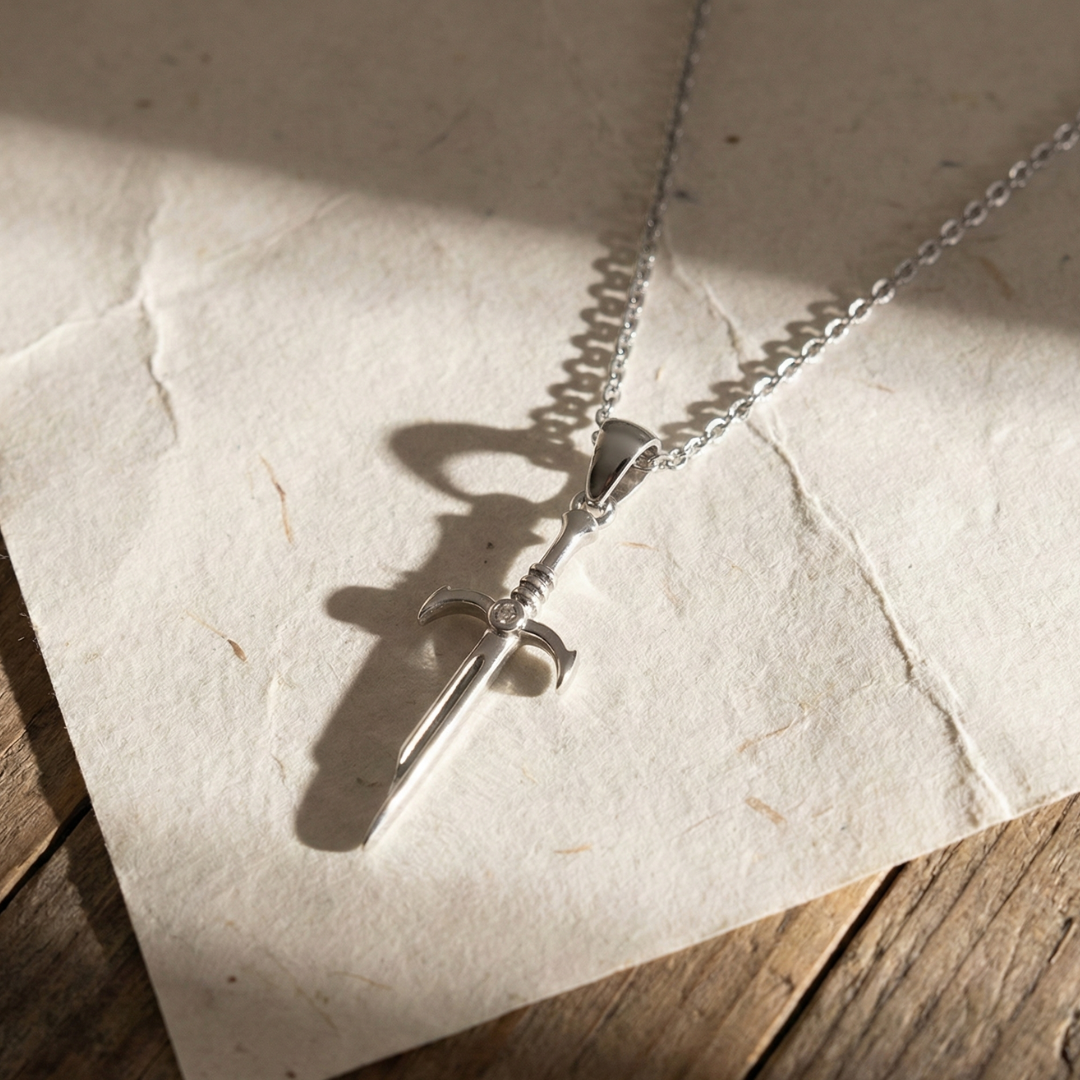 Wear a symbol of strength and resilience with The Warrior's Edge pendant. Meticulously crafted from solid 925 Sterling Silver, this pendant features a sharp, distinct sword design—a classic emblem of chivalry, power, and defense.